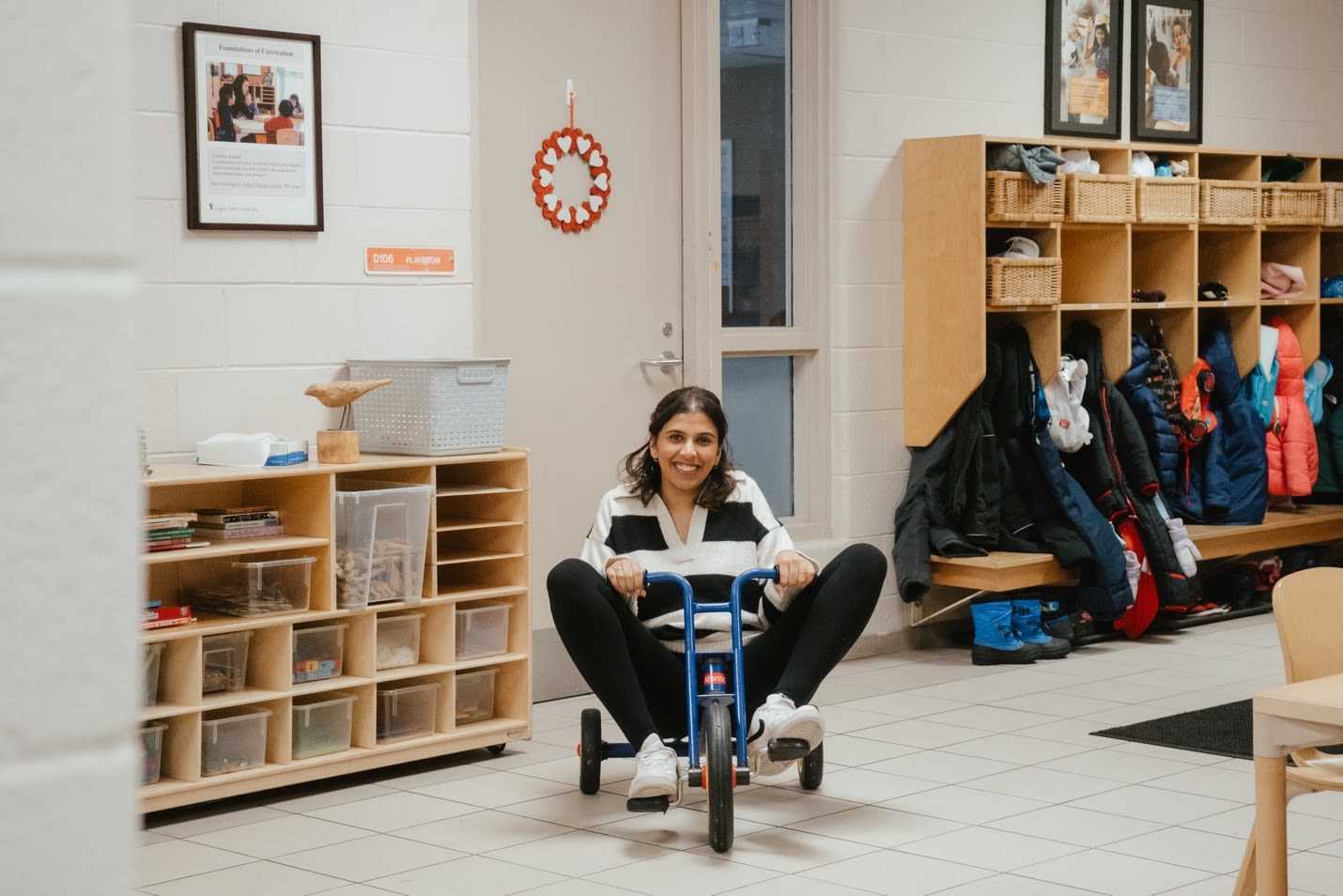 Valerie, an RECE, remembered a day when her colleague Petra hopped onto a preschool tricycle, knees high, racing alongside the children.